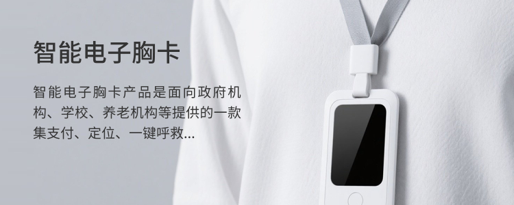 智能电子胸卡产品是面向政府机构、学校、养老机构等提供的一款集支付、定位、一键呼救、双向通话、4G通信、远程管理多远功能于一体的终端产品,具有易操作、易携带、功能简单实用的特点。