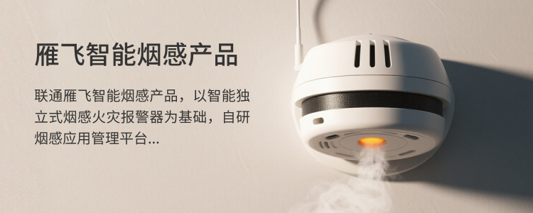 联通雁飞智能烟感产品,以智能独立式烟感火灾报警器为基础,自研烟感应用管理平台,为客户提供从底层终端至上层应用的端到端整体服务。